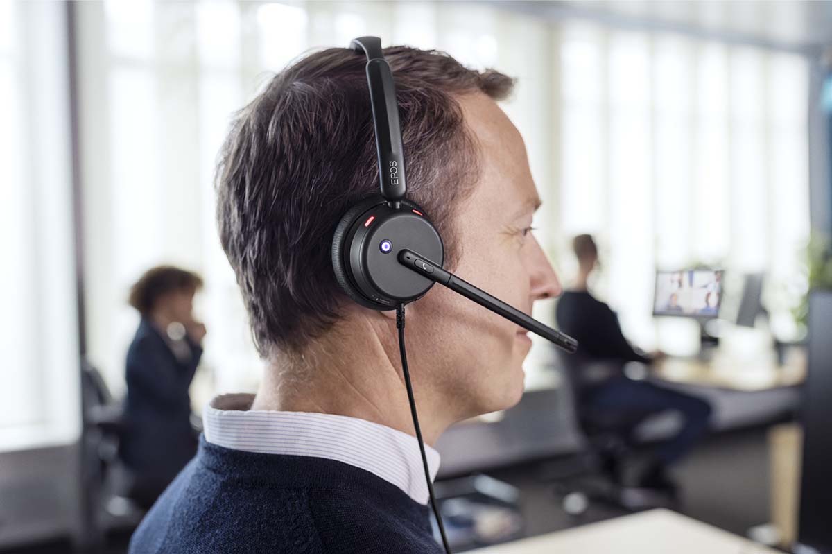 Audio quality that connects people better. With EPOS office solutions, your sound experience is perfected. Discover pioneering audio technology created through innovative design and performance. Achieve even more potential through clear sound and deep immersion in the conversation. With audio equipment from EPOS, you get products made from durable materials, with outstanding sound and maximum comfort. Interaction with EPOS devices is intuitive, making them easy and satisfying to use.